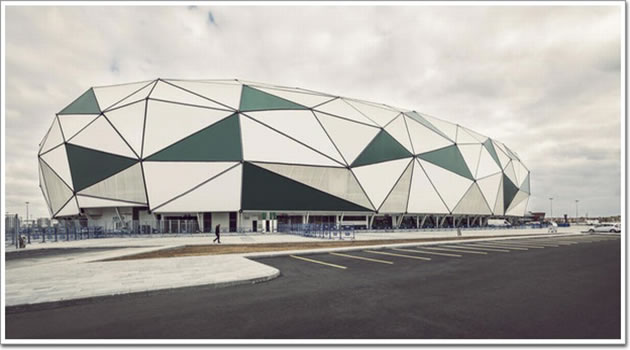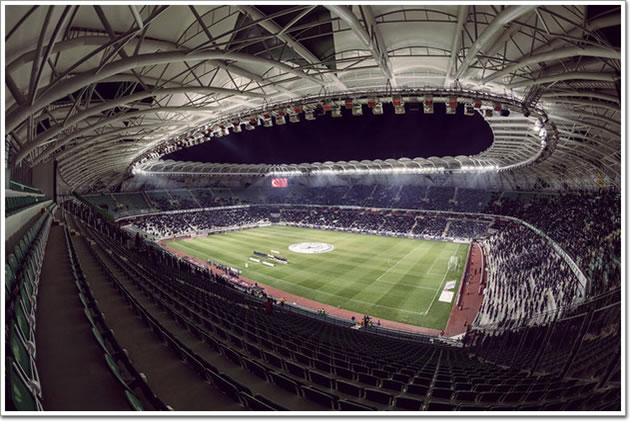 科尼亞城市體育館實(shí)景圖 科尼亞城市體育館坐落在科尼亞城市北部,距離市中心9公里,占地面積約450000平米,包含一個足球運(yùn)動場、一個游泳館、一個自行車賽車場和一個廣場。該體育館是科尼亞城市文化符號與現(xiàn)代建筑相互碰撞的產(chǎn)物,建筑的外立面白綠相間的顏色正是代表了這個城市的足球隊(duì)。 建筑的平面布置是根據(jù)歐足聯(lián)的標(biāo)準(zhǔn)設(shè)計(jì)的。場館分上下兩層看臺,總共可容納4.2萬人?磁_是環(huán)形的,在東南西北四個方向均設(shè)有座位區(qū)。在觀眾就坐的看臺下面有設(shè)置多個廁所和零售區(qū),足夠?yàn)閳鲳^內(nèi)的所有人提供服務(wù)。